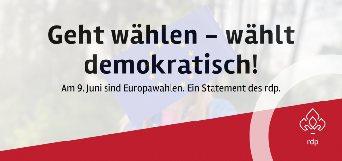Der Ring deutscher Pfadfinder*innenverbände ruft alle Jugendlichen und Erwachsenen ab 16 Jahren auf, ihre Stimme bei der Europawahl am 09.06.2024 wahrzunehmen und wählen zu gehen.