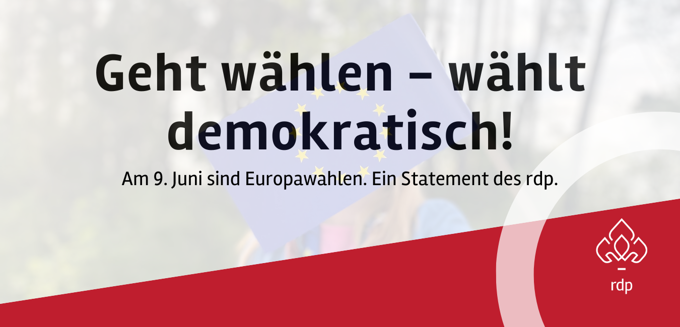 Der Ring deutscher Pfadfinder*innenverbände ruft alle Jugendlichen und Erwachsenen ab 16 Jahren auf, ihre Stimme bei der Europawahl am 09.06.2024 wahrzunehmen und wählen zu gehen.